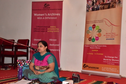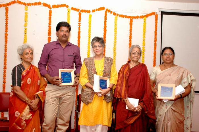 The award function is normally an informal event which we organise in collaboration with RCWS (Research Centre for Women’s Studies). Our association with RCWS is a long one and it is always a pleasure to work with Dr Putul Sathe who is generous with her time for this event. This is an annual event when everyone who is a friend of SPARROW comes to support and cheer us up. This year too our regular friends Dr Divya Pandey (former trustee and friend in whose love and support we thrive), Dr Chhaya Datar, Vijaya Dass, Dr Kunjalata Shah and writers Pudhiya Madhavi, Urmila Pawar and of course, our own Vishnu Mathur were there. It was a pleasure to have Ila Arab Mehta, the legendary Gujarati writer, with us and she came quietly as her sister Varsha Adalja’s guest.